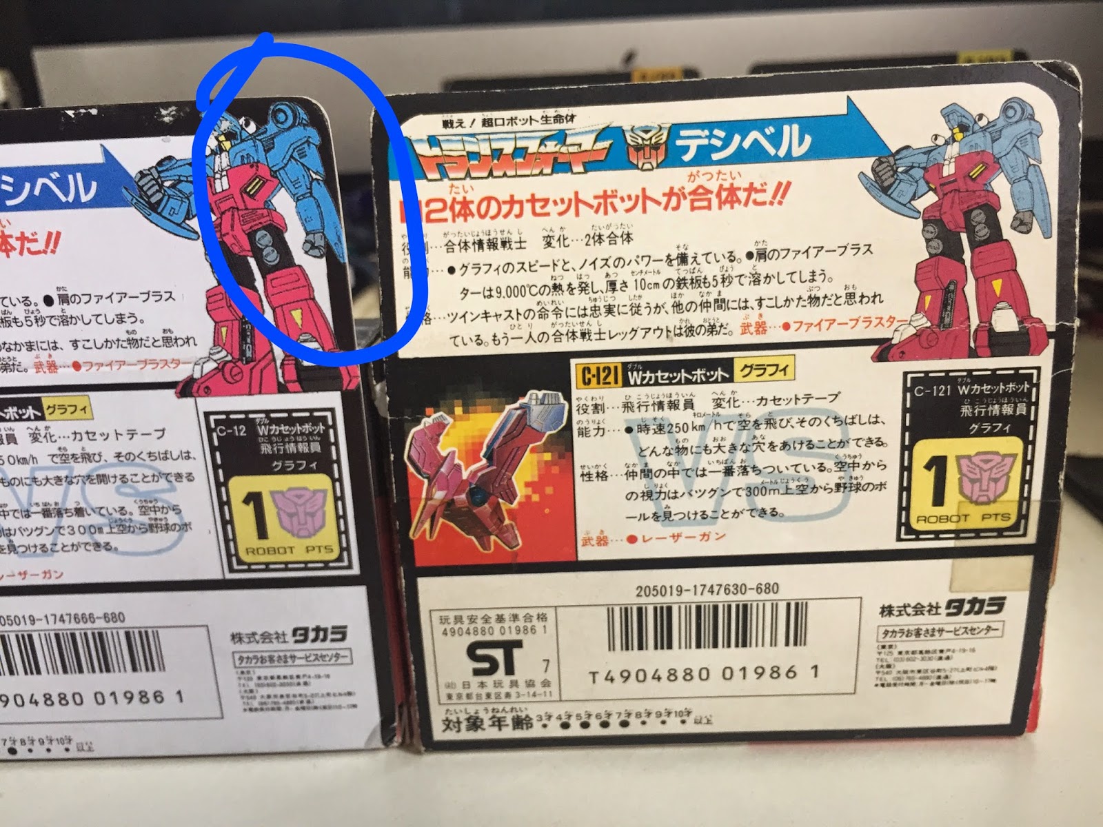 The artwork and on the side flap and the back of the box, as well as the top of the box, is the same as Gurafi…Arm of Decible should not go into the front of the box.